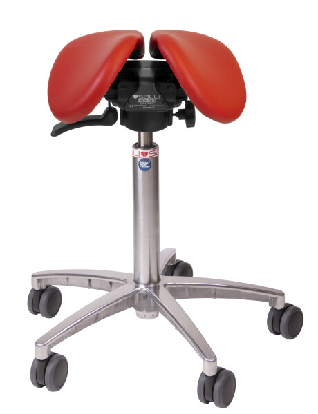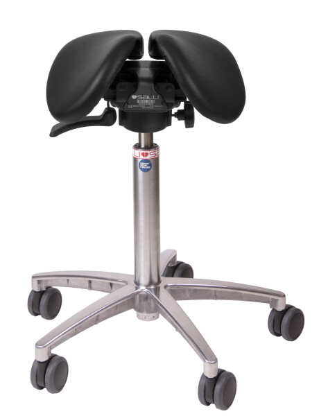 The two-part seat eliminates uncomfortable pressure that occurs when leaning over your patients or clients at work.