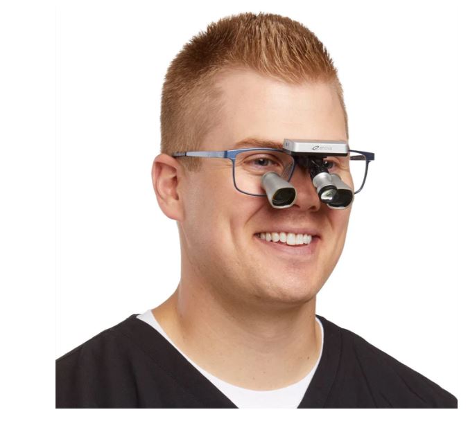 Magnetic loupe adapters are available for face shields and most other manufacturers of loupes, including Orascoptic™, Designs for Vision®, and SurgiTel® brands.