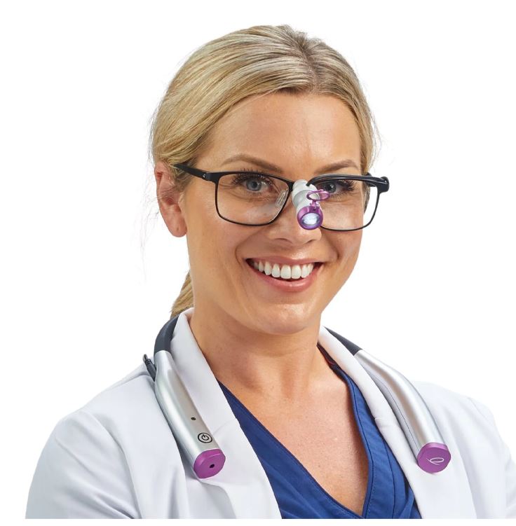 Like all of Enova’s industry-leading headlights, the Axis LED Light is made with aircraft aluminum, allowing you to clean it with most disinfectants, including CaviCide. The Axis Light provides incredible illumination with over 30,000 lux and features a 4" spot size. The power of the Axis dental light for loupes is evident when compared to other magnetic LED loupe lights.